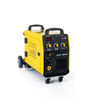 Urządzenie marki MAGNUM MIG 200 MMA KN jest półautomatem spawalniczym wykonanym w technologii inwerterowej zasilanym z sieci jednofazowej 230 V. Urządzenie umożliwia spawanie łukowe drutem topliwym MIG/MAG, drutem samoosłonowym FCAW (należy zmienić biegunowość w spawarce: minus (-) na uchwycie spawalniczym, plus (+) na masie!), oraz elektrodą otuloną MMA. Przeznaczone jest do wszelkiego rodzaju prac spawalniczych w warsztatach ślusarskich, warsztatach naprawczych.
