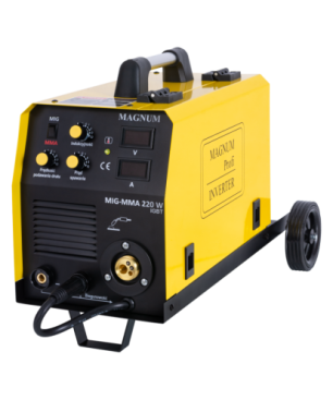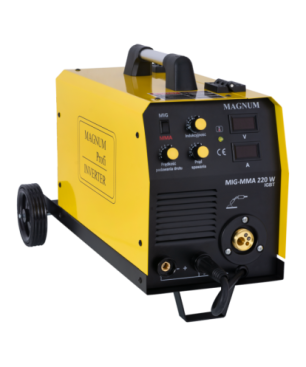 Urządzenie MAGNUM MIG-MMA 220W IGBT jest półautomatem spawalniczym przeznaczonym do ręcznego, elektrycznego spawania stali niskowęglowej, niskostopowej (MAG), stali stopowych (MIG) oraz aluminium i jego stopów. Urządzeniem można również spawać metodą MMA z wykorzystaniem topliwych elektrod otulonych.