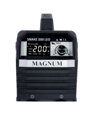 Urządzenie SNAKE 200 LED marki MAGNUM jest lekkim, przenośnym źródłem energii wykonanym w technologii inwertorowej. Urządzenie zasilane jest z sieci jednofazowej 230V, posiada maksymalny prąd spawania 200 A oraz wysoką 60% sprawność. SNAKE 200 LED wyposażony jest w duży multifunkcyjny, intuicyjny wyświetlacz LED.