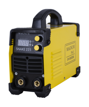 Urządzenie MAGNUM SNAKE 225 jest spawarką przeznaczoną do ręcznego, elektrycznego spawania stali i innych spawalnych metali metodą MMA. Dla uzyskania jak najlepszych osiągów i niezawodności urządzenie wytwarzane jest zgodnie z najbardziej wymagającymi standardami, co zapewnia mu znakomite parametry spawalnicze. Posiada wbudowany układ zabezpieczający przed przegrzaniem, przeciążeniem, niestabilnością zasilania. Dzięki temu zajarzanie łuku i prowadzenie elektrody jest niezwykłe łatwe, nawet dla spawaczy bez żadnego doświadczenia. Przeznaczona do spawania wszystkimi typami elektrod z funkcją płynnej regulacji ARC FORCE.