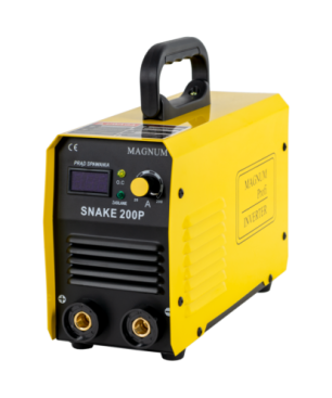 Urządzenie inwerterowe SNAKE 200P (S) jest lekkim, przenośnym źródłem energii. Służy do spawania elektrodami otulonymi różnych gatunków stali w tym zwykłych, nierdzewnych, żaroodpornych oraz żeliwa. Przeznaczone jest do pracy w warunkach terenowych i wykonywania wszelkiego rodzaju prac naprawczych. Urządzenie charakteryzuje się dużą sprawnością 200 A / 60%. Posiada znakomitą charakterystykę łuku dla elektrod rutylowych i zasadowych.